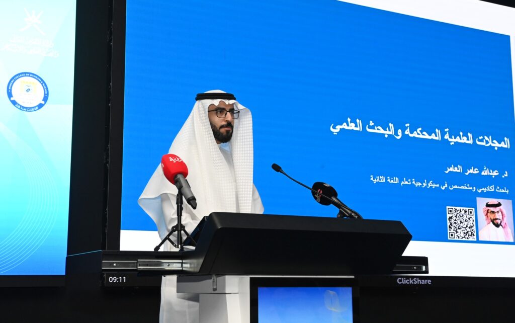 وأضاف أن المجلات العلمية المحكمة تمثل منصة أساسية لتبادل المعارف ونشر البحوث الرصينة، ما يجعل الاستثمار في تطويرها استثمارًا مباشرًا في جودة البحث العلمي ومخرجاته، مشيرًا إلى أن التعاون بين الكلية والوزارة في تنظيم الملتقى يأتي للإسهام في تطوير المجلات العلمية العُمانية، واستعراض أفضل الممارسات الدولية، بما يعزز جودة النشر الأكاديمي ومكانة سلطنة عُمان البحثية.