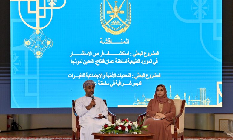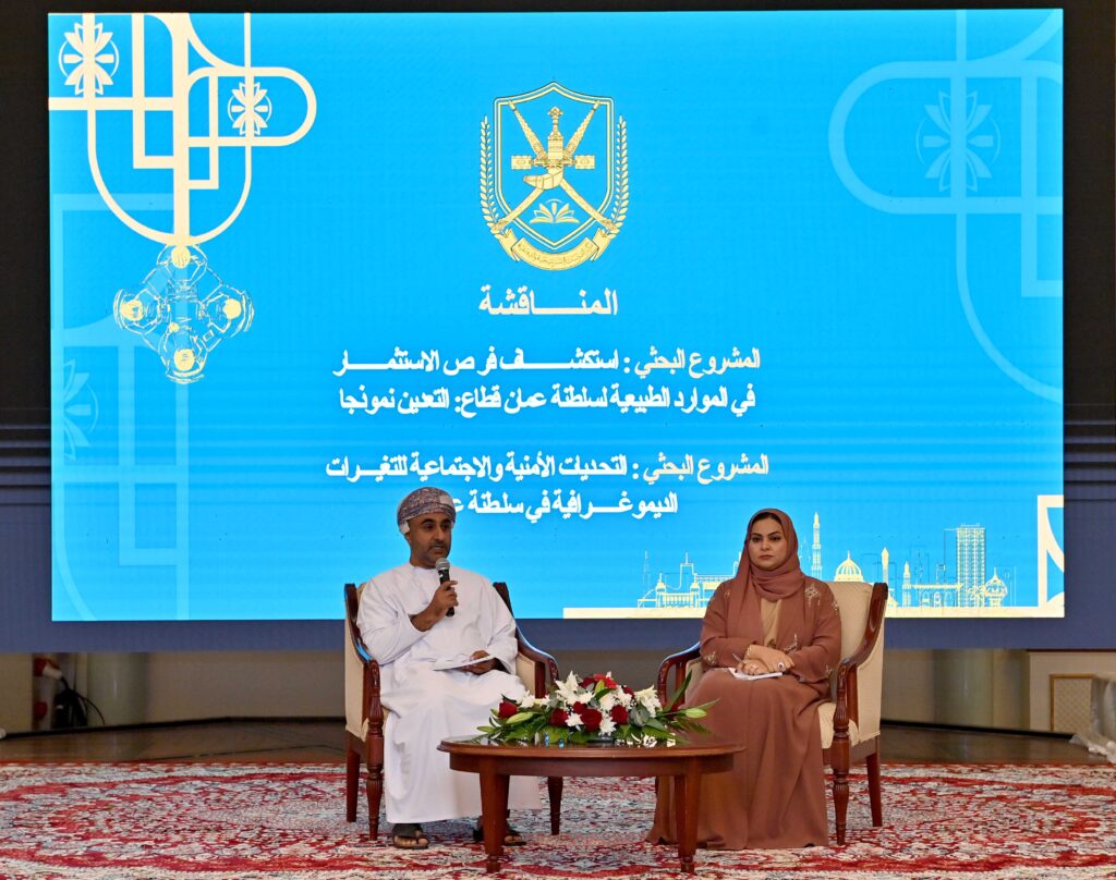 بعد ذلك تم استعراض ومناقشة عدد من البحوث العلمية أبرزها “التحديات الأمنية والاجتماعية للتغيرات الديمغرافية في سلطنة عُمان”، و”استكشاف فرص الاستثمار في الموارد الطبيعية لسلطنة عُمان، قطاع التعدين نموذجًا”، و”إستراتيجيات التنويع الاقتصادي في سلطنة عُمان وأثرها على الأمن الاقتصادي والأمن الاجتماعي وفقًا لرؤية عُمان 2040″، و”توثيق تجربة سلطنة عُمان في التعامل مع جائحة كوفيد 19”.