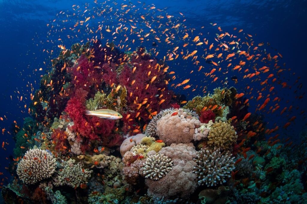 تضم المحمية تشكيلات مرجانية متنوعة تشمل الشعاب الحاجزية ومئات الشعاب البُقعية، التي تُشكّل بنية أساسية لأنظمة الحياة البحرية ومواقع رئيسية للتكاثر والتغذية والحضانة. هذا التنوع يعزز من مرونة النظام البيئي وقدرته على التكيّف مع التغيرات المناخية والضغوط البشرية.