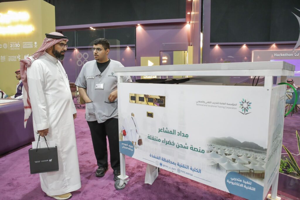 وقدّمت الكلية خلال مشاركتها ابتكار “مداد المشاعر – منصة شحن خضراء متنقلة”، الذي صمّمه وطوّره متدربو الكلية بإشراف كوادر تدريبية متخصصة، مع إبراز الجهود التقنية والمهارات التطبيقية التي يمتلكها المتدربون في تقديم حلول مبتكرة تسهم في إثراء منظومة الخدمات المقدّمة لضيوف الرحمن.