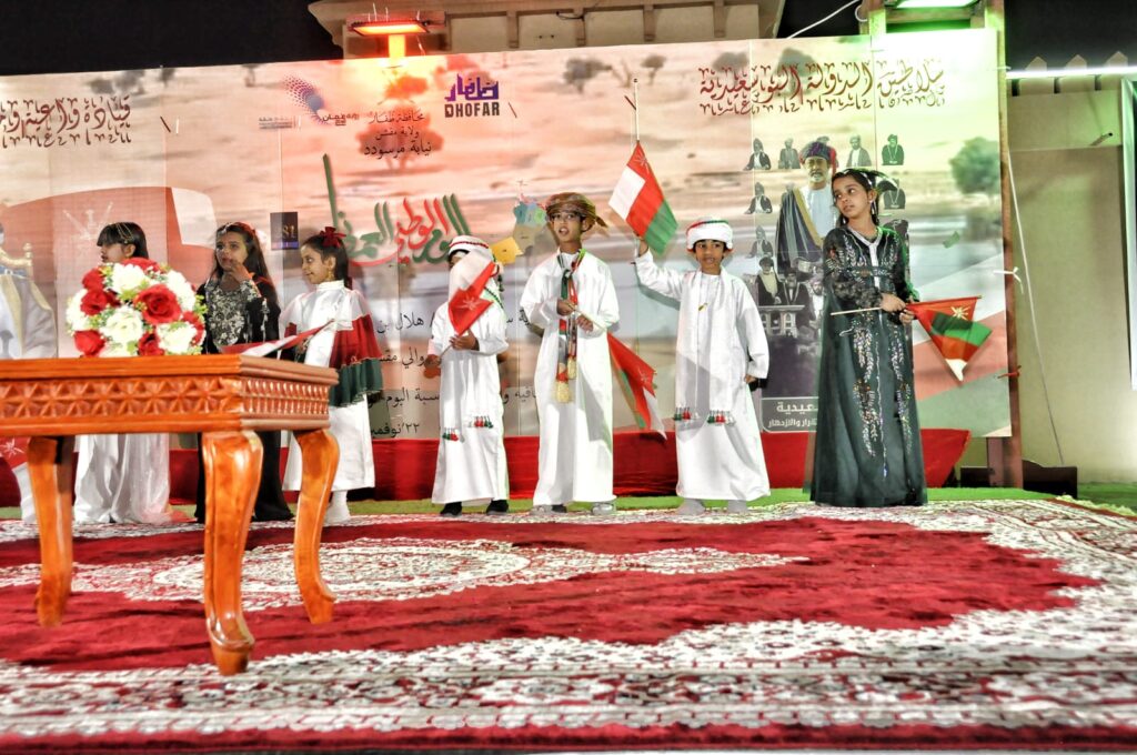كمااشتملت المناسبة على مجموعة من الفعاليات المتنوعة أبرزها عرض فلم وثائقي عن اليوم الوطني ومشاركة طلابية من خلال أنشودة وطنية بالإضافة إلى إقامة محاضرة ثقافية بعنوان الهوية والمواطنة كما تم تقديم فقرات متنوعة من القصائد الشعرية والفنون الشعبية واللوحات الفنية التي تعبر عن حب الوطن بما يعكس تعزيز الانتماء الوطني وحرص المجتمع على القيم العمانية الأصيلة.