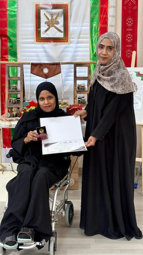 تكريم عضوات الجمعية العُمانية للأشخاص ذوي الإعاقة بظفار لدورهن البارز في معرض “صُنع في عُمان” بمدرسة ٢٣ يوليو