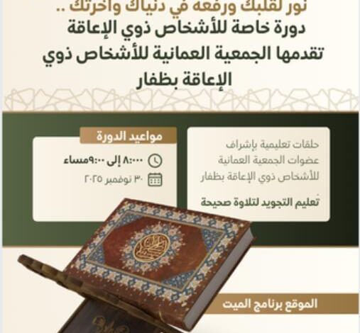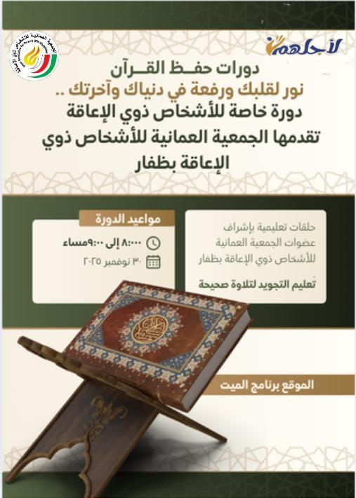 «بفضل الله انطلقت اليوم أول جلسة ميت لمدارسة القرآن الكريم لذوي الإعاقة، بإشراف الفاضلة نور العامري. خطوة مباركة تُقرّب أبناءنا من نور كتاب الله وتمنحهم سكينة وأثرًا طيبًا. نسأل الله أن يبارك في هذا العمل وأن يجعل القرآن الكريم ربيع قلوبهم ونور صدورهم».