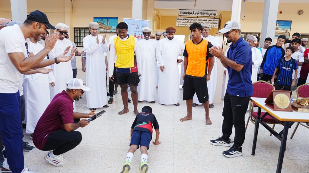 وشارك الغواص الدولي عمر الغيلاني سفير الاتحاد العماني للرياضة المدرسية طلبة مدرسة احمد بن ماجد بولاية صور بمحافظة جنوب الشرقية في اليوم الرياضي الموحد لمدارس سلطنة عمان شوية رياضة، وتفاعل مع الطلبة في تنفيذ العديد من الفعاليات.
