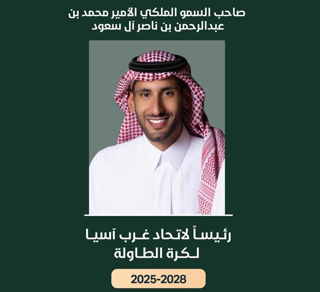 تزكية صاحب السمو الملكي الأمير محمد بن عبد الرحمن بن ناصر رئيسًا #لاتحاد_غرب_آسيا لكرة الطاولة للفترة من عام 2025 حتى عام 2028