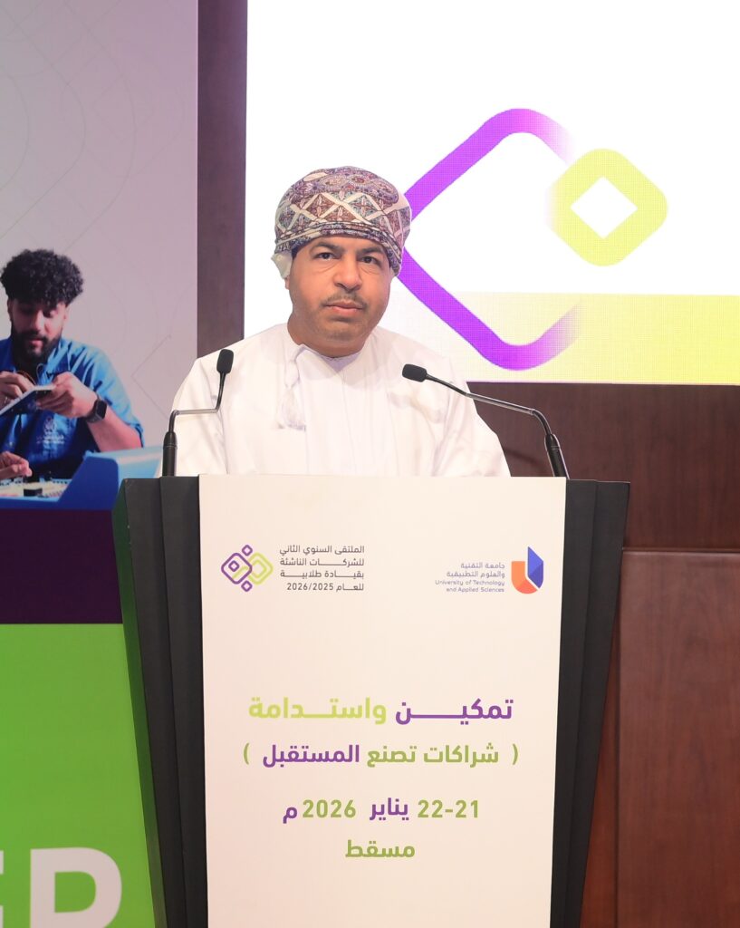 بدأت أعمال الملتقى السنوي الثاني للشركات الناشئة بقيادة طلابية، الذي تنظمه الجامعة التقنية والعلوم التطبيقية بهدف تمكين الطلبة وتحويل أفكارهم الريادية إلى مشاريع مستدامة، وذلك تحت رعاية صاحب السمو السيد نمير بن سالم بن علي آل سعيد.