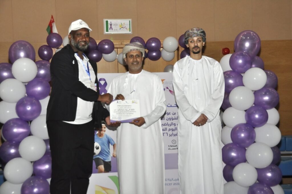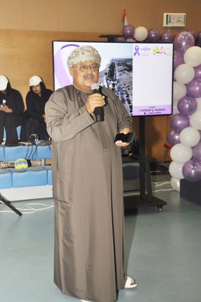 نظّمت الجمعية العُمانية للسرطان فرع محافظة ظفار مساء اليوم بمجمع السلطان قابوس الشبابي للثقافة والترفيه الملتقى الترفيهي الرياضي لمرضى السرطان وأسرهم وذلك تحت رعاية المهندس محمد بن عوفيت المعشني الرئيس التنفيذي لشؤون الشركات بميناء صلالة بحضور نخبة من الرياضيين الإعلاميين والمهتمين حيث يأتي الملتقى تزامنًا مع اليوم العالمي للسرطان الذي يوافق الرابع من فبرايركل عام