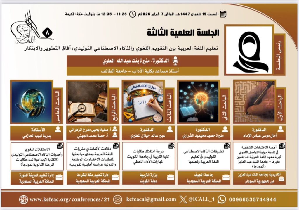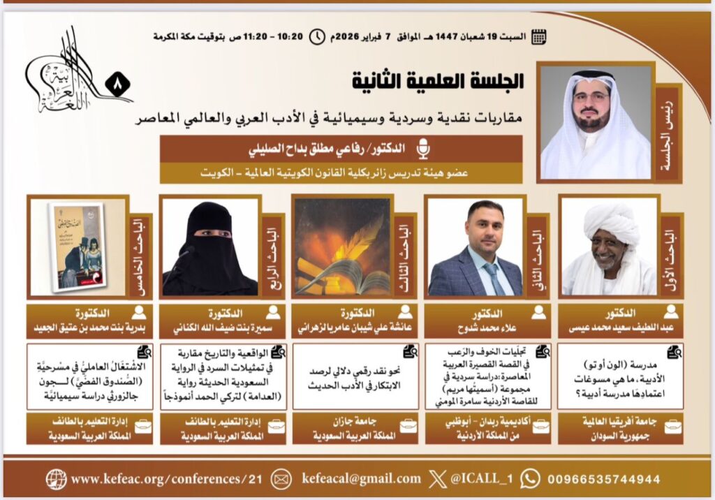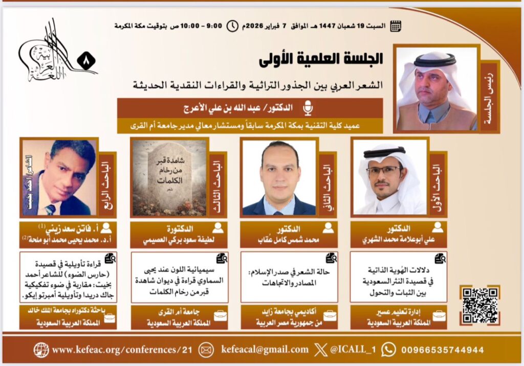 ويأتي انعقاد المؤتمر في عامة الثامن على التوالي وسط مشاركات محلية ودولية، في أجواء علمية رصينة تعكس حرص اللجنة المنظمة على تعزيز البحث العلمي، وتبادل الخبرات المعرفية بين الأكاديميين والباحثين من مختلف حقول اللغة العربية وآدابها، وقد روعي في إعداد جدول أعمال المؤتمر أن تتسم جلساته بالاتساق في المحاور، والتدرج في الموضوعات، بما يحقق أهدافه العلمية والفكرية، ويواكب النجاحات المتتالية التي حققتها سلسلة مؤتمرات مكة السابقة، سواء الافتراضية أو الحضورية.