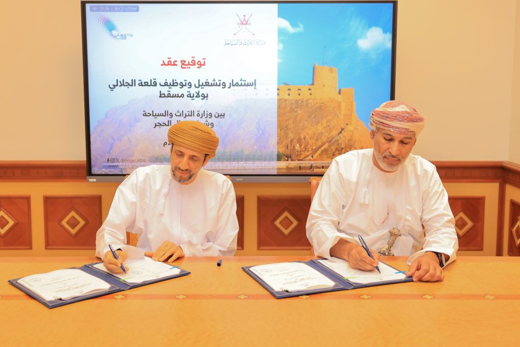 وقعت وزارة التراث والسياحة عقد إدارة وتشغيل وتوظيف قلعة الجلالي بولاية مسقط بمحافظة مسقط مع شركة جبال الحجر، وذلك في إطار جهودها لتعزيز الشراكة مع القطاع الخاص في إدارة وتشغيل المواقع التراثية. وقع الاتفاقية من جانب الوزارة معالي السيد إبراهيم بن سعيد البوسعيدي وزير التراث والسياحة فيما وقعها من جانب الشركة هلال بن حمد البوسعيدي رئيس مجلس إدارتها المفوّض بالتوقيع.